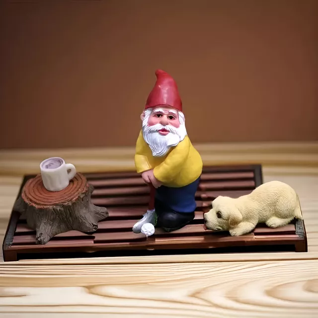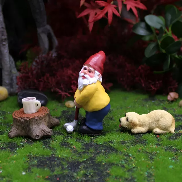 This set of mini golf-playing gnomes is not only a conversation starter but also a delightful way to bring some cheer to any space. Whether you’re sprucing up your garden, adding a fun touch to your desk, or gifting it to someone special, these charming statues are sure to leave a lasting impression. The attention to detail in their design—right down to the cute dog, tree stump, and tiny golf cup—makes them a standout decoration in any setting.