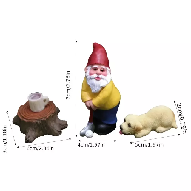 Add a touch of whimsy and fun to your space with this adorable 4-piece mini gnome set! Featuring playful gnomes and a cheerful dog, these cute resin statues are the perfect blend of humor and style for any home or office. Whether you’re a golf enthusiast, a bonsai lover, or just looking to add a charming decoration to your desk, this set is sure to bring a smile to your face every time you look at it.