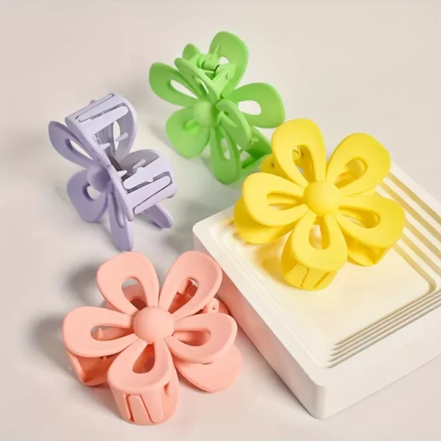 Crafted from lightweight, durable plastic, each hair claw in this set features a hollowed flower design combined with a soft matte texture for a modern, understated look. Measuring about 2.5 inches, these clips are ideal for securing long hair, thin hair, or half-up hairstyles with ease and comfort. Their smooth finish prevents tugging or damage, making them a perfect match for daily wear.