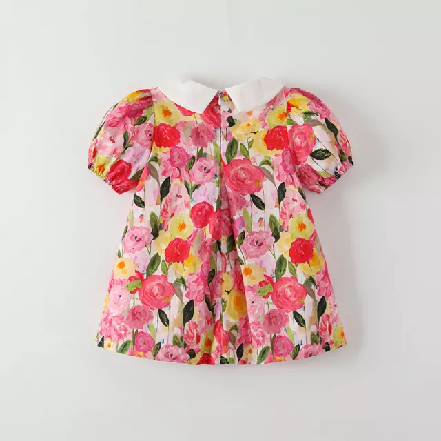 This dress is more than just pretty—it’s made with your child’s comfort and movement in mind. Its A-line silhouette offers a roomy fit for crawling, toddling, and twirling, while the lightweight cotton fabric ensures your little one stays fresh and breezy all summer long. The short sleeves and lapel collar add a polished look without overheating. It’s easy to dress up or down, making it ideal for everything from photo shoots to park playdates.
