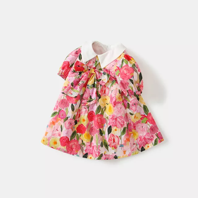 Dress your baby girl in pure charm with this sweet and stylish summer dress, perfect for toddlers aged 0 to 3 years. Designed with a beautiful oil painting-style rose floral print and topped off with an oversized bow, this A-line dress is a dreamy addition to any little girl’s wardrobe. Made with breathable, soft cotton, it’s gentle on your baby’s skin and keeps her cool and comfy on sunny days. Whether it’s a picnic, a party, or just a day out with family, this dress brings an extra sprinkle of joy to every occasion.