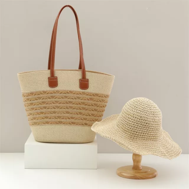 Elevate your beach style with this chic, two-piece hand-crocheted straw hat and large-capacity tote bag set. Perfectly crafted for spring and summer days, this combination brings together functionality and fashion. The tote bag provides ample storage for all your beach essentials, while the wide-brim straw sun hat offers superior sun protection without compromising on style. Both pieces are designed with casual elegance in mind, making this set an essential addition to your warm-weather wardrobe.