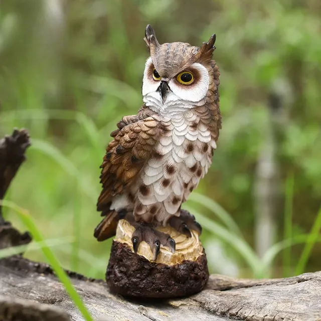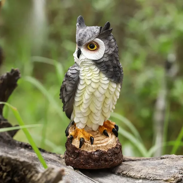 Cute Owl Resin Figurine – Lifelike Desktop Ornament for Home and Garden Decoration