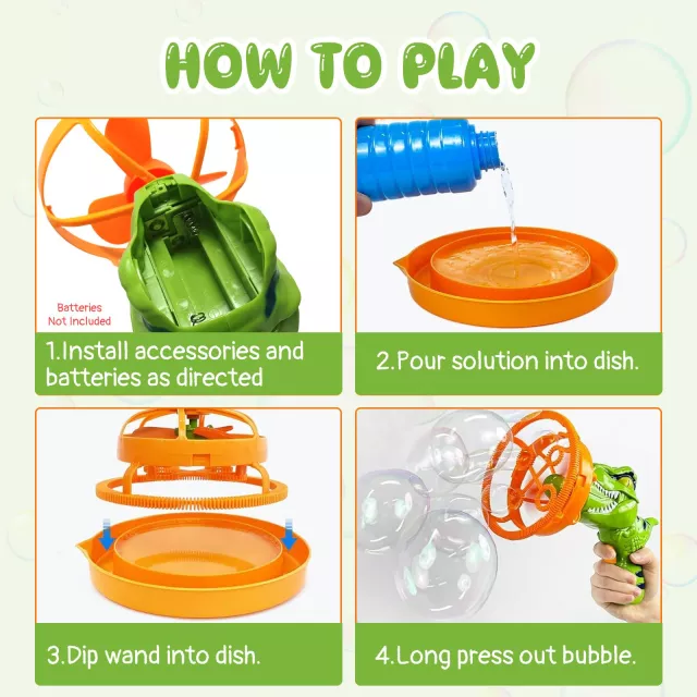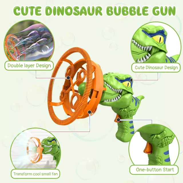 So why wait? Let your child enjoy endless hours of bubble-filled fun with this Electric Dinosaur Bubble Fan Toy. Add it to your cart today and watch as their imagination and joy bubble over!