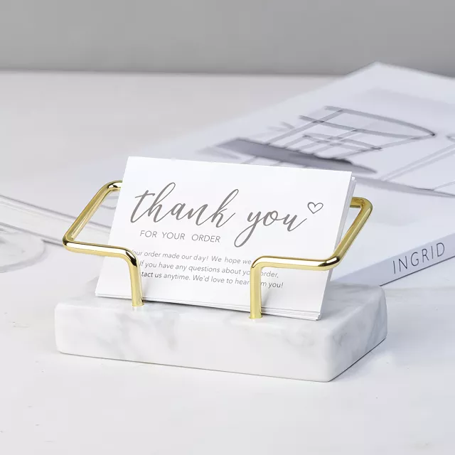 Make a lasting first impression with this creative marble business card holder, crafted to exude class and professionalism. Designed in a sleek Nordic minimalist style, this card holder features a luxurious combination of natural marble and gold-toned metal. Whether you’re greeting clients, networking at events, or simply organizing your workspace, this elegant piece adds a polished, high-end feel to any setting.