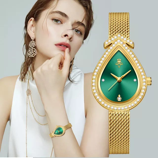 Turn heads with this exquisite retro-inspired women’s watch designed for those who appreciate a blend of vintage charm and modern luxury. With its distinctive water drop-shaped dial and dazzling rhinestone embellishments, this elegant gold-tone timepiece offers a unique style statement that effortlessly elevates your everyday and evening looks. Whether you’re dressing for a brunch date, an office meeting, or a night out, this watch adds a touch of sophistication to every outfit.