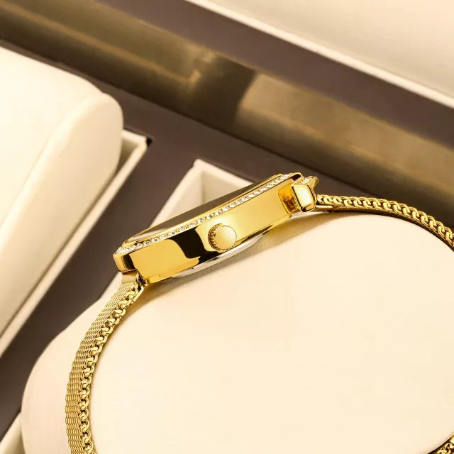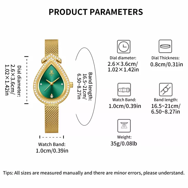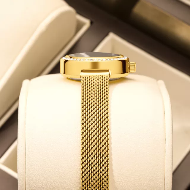 More than just a timekeeper, this watch is a conversation starter. The personalized design features a graceful, irregular-shaped case paired with synthetic rhinestones that mimic the brilliance of real diamonds. The gold-tone alloy case is IP plated for long-lasting color retention, making it both durable and beautiful. The ultra-thin wristband is breathable, comfortable, and can be adjusted up to 8.3 inches, offering a custom fit for all-day wear. And with its minimalist, numberless dial, the design remains sleek and clutter-free, ideal for women who favor understated elegance.