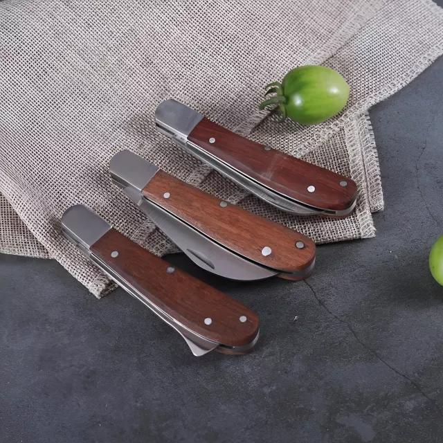 What sets this pruning knife apart is its combination of craftsmanship and functionality. The folding design allows for easy storage and portability, while the high-quality stainless steel blade ensures every cut is sharp and precise. Whether you’re a gardening enthusiast or a professional, this tool will elevate your garden maintenance with its ergonomic wooden handle and versatile uses. Its ability to fold makes it both a space-saver and a safe tool to carry in your pocket or bag, ready for action whenever you need it.