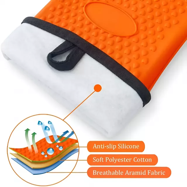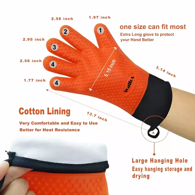 What sets these gloves apart is their combination of safety, comfort, and versatility. The unique dual-layer design provides superior protection from heat while remaining lightweight and breathable. With a heat resistance of up to 450°F, they allow you to handle hot items with ease, from the grill to the oven. The non-slip grip ensures secure handling, even with slick or heavy items, and cleaning is a breeze with the waterproof silicone surface. Plus, the soft cotton lining ensures a comfortable fit, even during long cooking sessions.