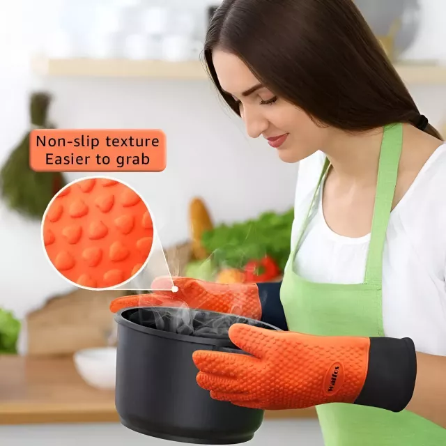 • Heat Resistance Up to 450°F: Made with FDA-approved, BPA-free silicone, these gloves are heat-resistant up to an impressive 450°F (232°C). They’re perfect for handling hot pots, pans, grilling items, and removing food from the oven or microwave safely.