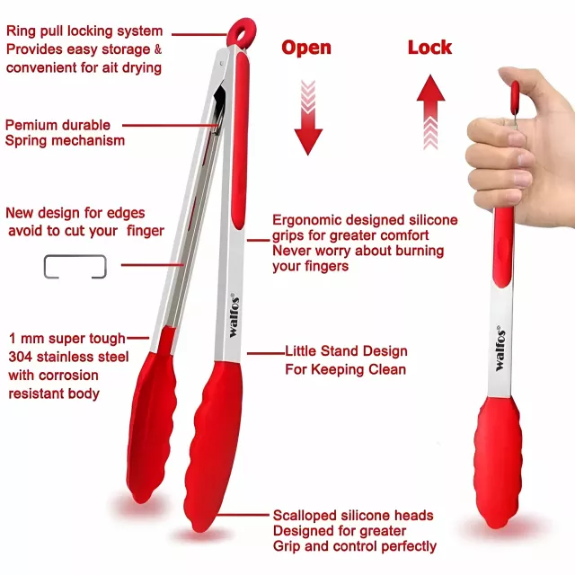 These tongs stand out because of their combination of safety, durability, and ease of use. Unlike traditional metal tongs, the food-grade silicone tips protect your cookware and provide a non-slip grip. The stainless steel core ensures strength and longevity, while the ergonomic design makes them comfortable to use for all your cooking and grilling needs. The locking mechanism and pull-ring technology make storage simple and space-efficient. Plus, they’re dishwasher-safe, making clean-up a breeze!