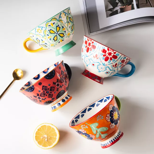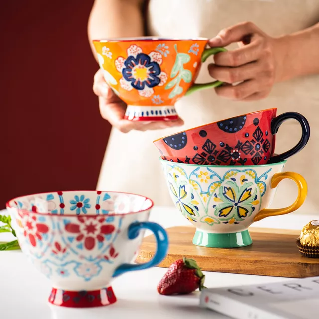 Whether you’re at the office, enjoying breakfast at home, or having a quiet moment in the afternoon, this mug enhances the experience. The smooth ceramic finish, curved handgrip, and stunning painted design create a delightful blend of function and beauty. The floral pattern is timeless, offering a gentle and refreshing aesthetic that brightens any tabletop.