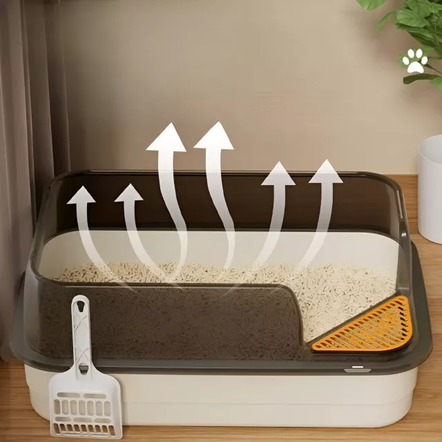 Upgrade your feline friend’s bathroom experience with this spacious, semi-enclosed litter box designed for comfort, cleanliness, and convenience. Whether you’re a new cat owner or a seasoned pet parent, this thoughtfully designed litter box makes daily maintenance easier while keeping your home cleaner. With its elevated edges, open design, and roomy interior, it’s the ideal choice for larger cats or multi-cat households.