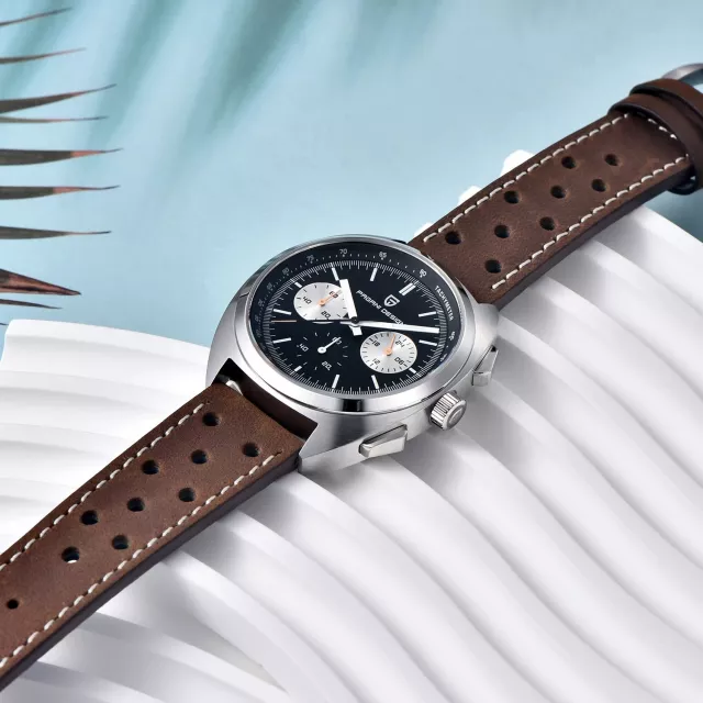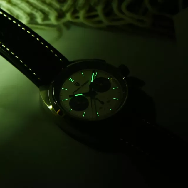 Built with a robust stainless steel case and a secure folding clasp, this watch feels as solid as it looks. The sapphire crystal mirror is scratch-resistant and crystal-clear, giving you a flawless view of the dial at any angle. With a water resistance of up to 10 bar (approximately 330 feet), it’s ready for swimming, showering, and active sports. The luminous hands and chronograph functionality add both aesthetic appeal and everyday utility, so you can track time accurately — even in the dark.