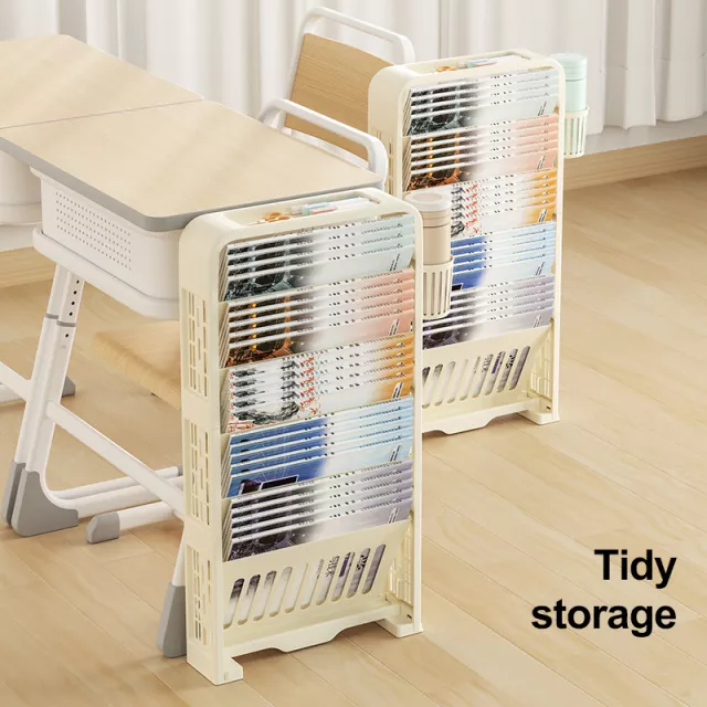 This versatile bookshelf features a multi-layered layout that allows you to store textbooks, notebooks, documents, and even decorative items—all within arm’s reach. The drop wheel system makes it easy to move across any surface, giving you the freedom to reconfigure your space at any time. Each layer is sturdy and spacious, offering ample room for large books and essential items, keeping your desktop clutter-free and your mind focused.