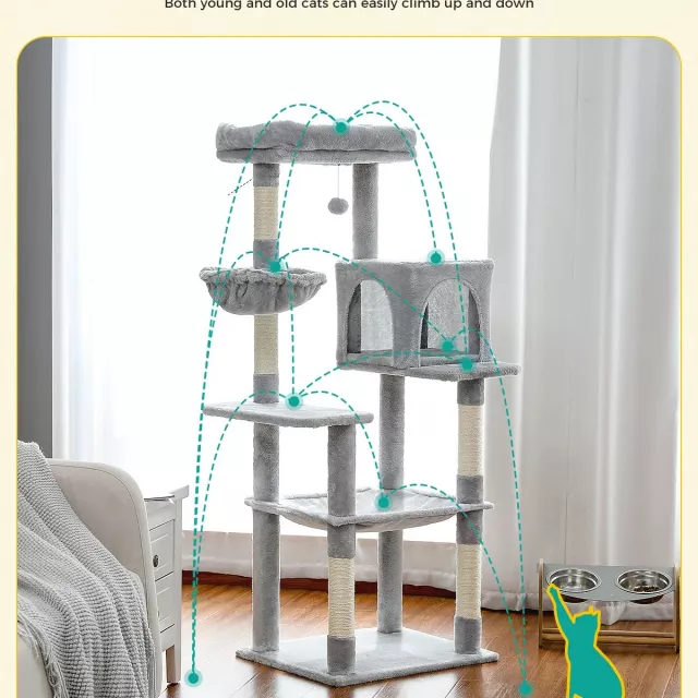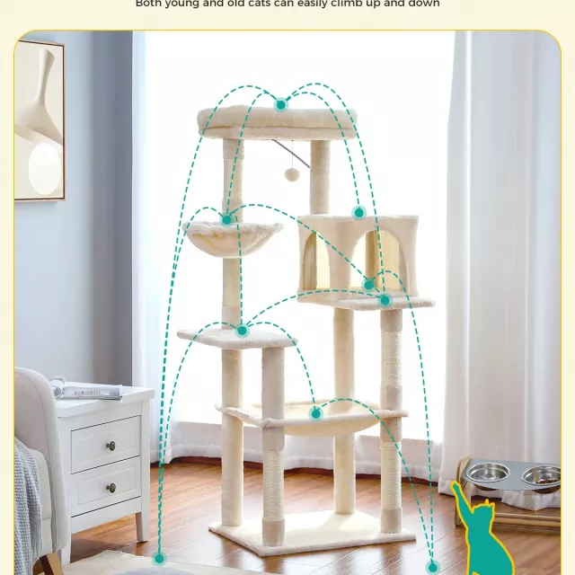 What sets this cat tree apart is its balance of functionality, comfort, and durability. Unlike basic cat posts, this one offers an entire play system—climb, scratch, hide, lounge, and repeat. Its neutral beige or gray tones blend seamlessly into any room décor, making it a smart and stylish choice.