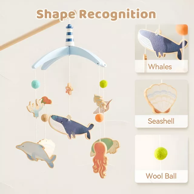 Transform your baby’s crib into a dreamy sea adventure with this adorable Ocean Whale Wooden Crib Mobile. Designed to soothe, entertain, and visually stimulate your baby from birth to 36 months, this charming mobile features soft ocean-themed characters that gently sway with movement and play calming music. Handcrafted from natural wood and safe materials, it’s a beautiful addition to any nursery and makes a thoughtful gift for new parents.