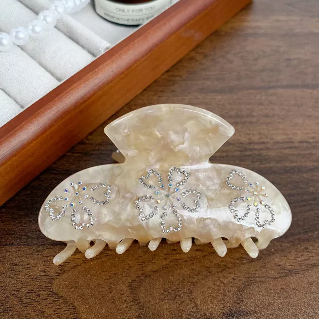 Made from high-quality acrylic acetate, this claw clip is lightweight yet durable, offering a secure grip without damaging your hair. The rhinestone accents catch the light just right, adding a subtle sparkle that feels refined, not overdone. Designed for women and girls who love both function and beauty, this piece is the perfect finishing touch to a sleek bun, a romantic twist, or a soft half-up hairstyle.