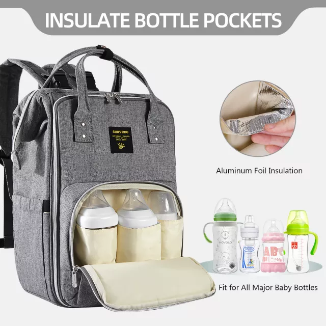 • Convertible carry options as a backpack, tote, or stroller-attached bag