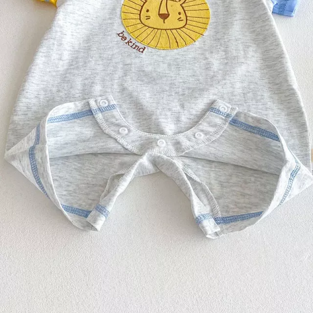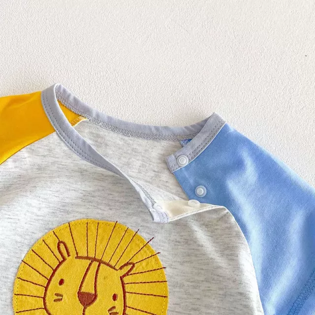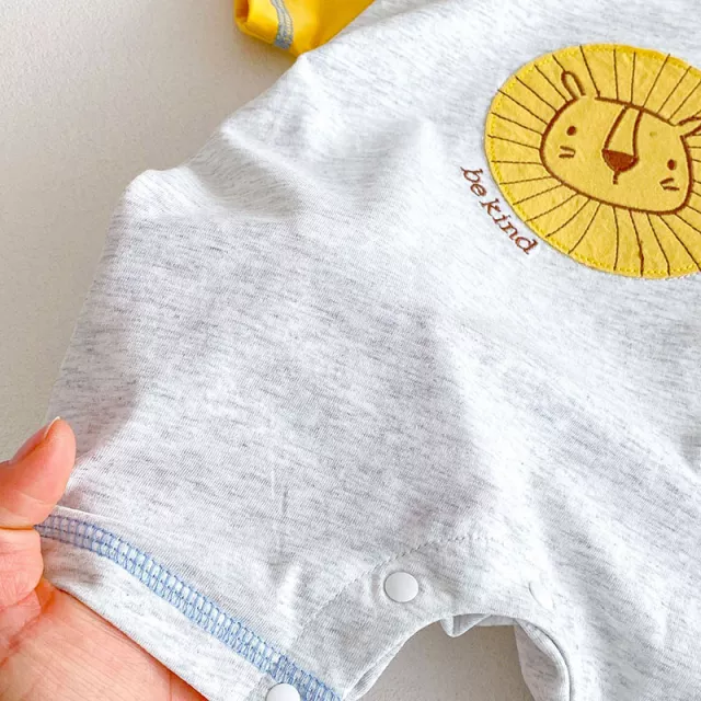 Looking for the perfect summer outfit that’s as charming as it is practical? This color block lion romper is designed to keep your little one looking cute and feeling cool during sunny adventures. With a fun mix of gray, yellow, and blue, this romper delivers eye-catching style that stands out, whether it’s a day in the park, a family gathering, or a playful afternoon stroll.