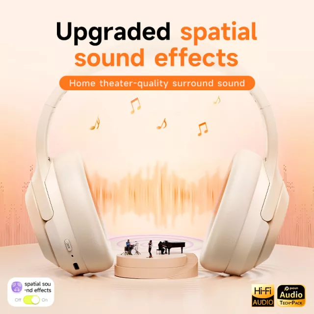 With powerful active noise cancellation technology that reduces ambient noise by up to 48dB, you’ll enjoy your audio in peace, even in busy environments. The headphones are equipped with dual 40mm dynamic drivers that offer rich bass, vibrant mids, and sparkling highs—perfect for every genre. Thanks to the built-in HD mic with ENC (Environmental Noise Cancellation), your voice stays crystal clear on calls, even when you’re outdoors or on the move.