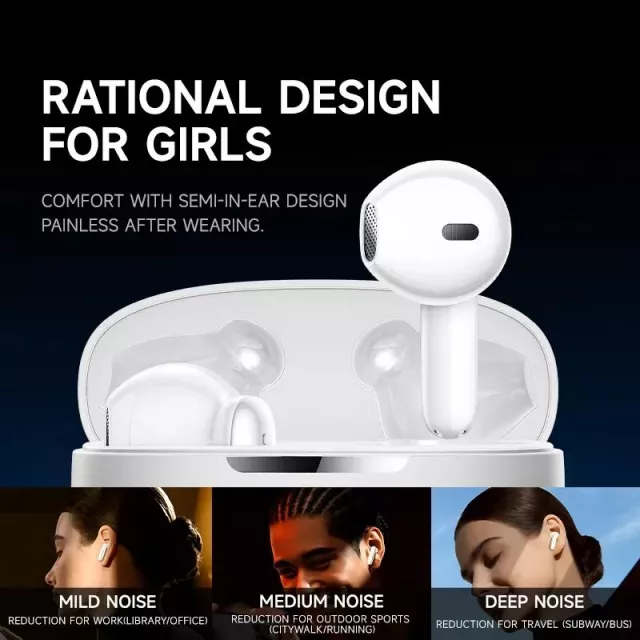 These semi-in-ear earbuds were built with comfort and performance in mind. The snug fit ensures hours of wear without discomfort, while the six built-in microphones with ENC technology offer clear, high-definition calls in any environment. Whether you’re commuting, jogging, or working remotely, these earbuds adjust in real time to give you the best possible audio experience.
