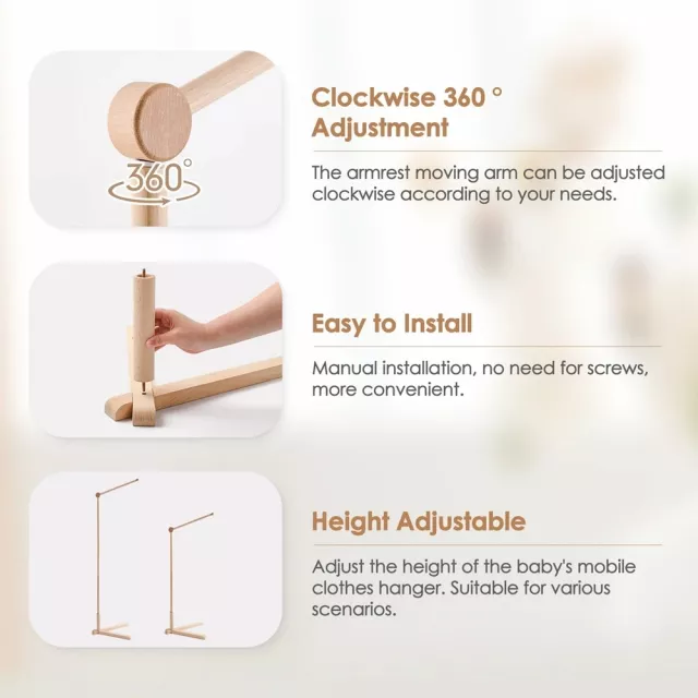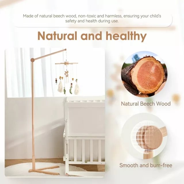 Unlike traditional crib mobiles that require attachment to the crib bars or ceiling, this free-standing design offers flexibility and ease of use. Its timeless wooden look adds warmth and charm to your baby’s space without overwhelming the décor. Plus, the thoughtful inclusion of rattles adds a gentle layer of interaction your baby will love.
